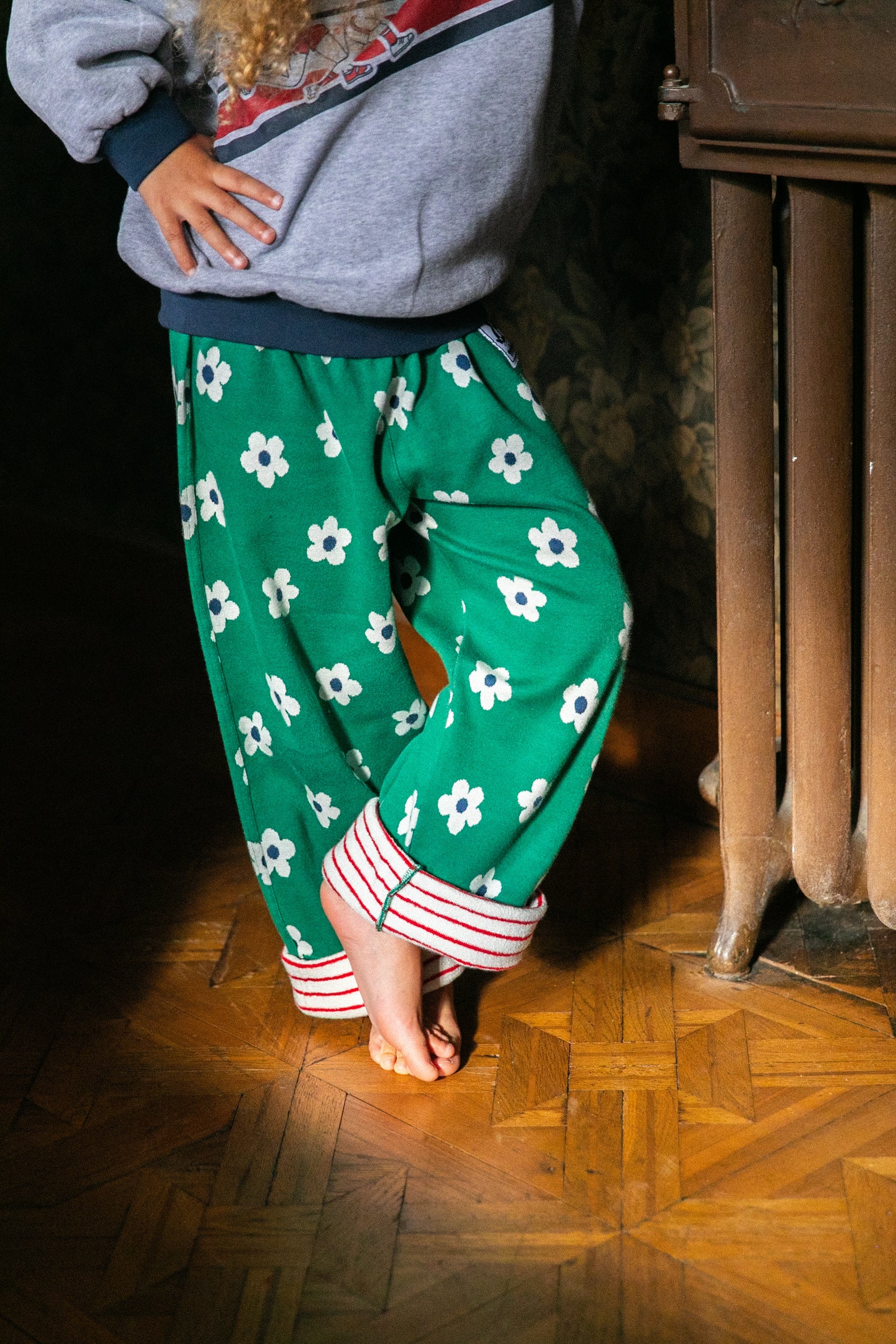 "Imprimés vintage qu’on adore ! Les pantalons sont géniaux et confortables aussi bien pour filles que garçons" -- Juliette M., maman d'Elliot, Alice et Léon.