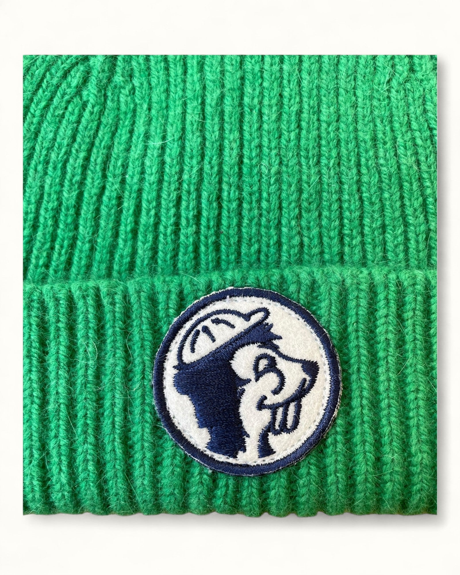 Bonnet en maille côtelée laine et angora avec revers, issu d'une collaboration entre les marques Club Trésor et Mackie, une des plus anciennes manufactures de tricot haut de gamme en Europe (depuis 1845).