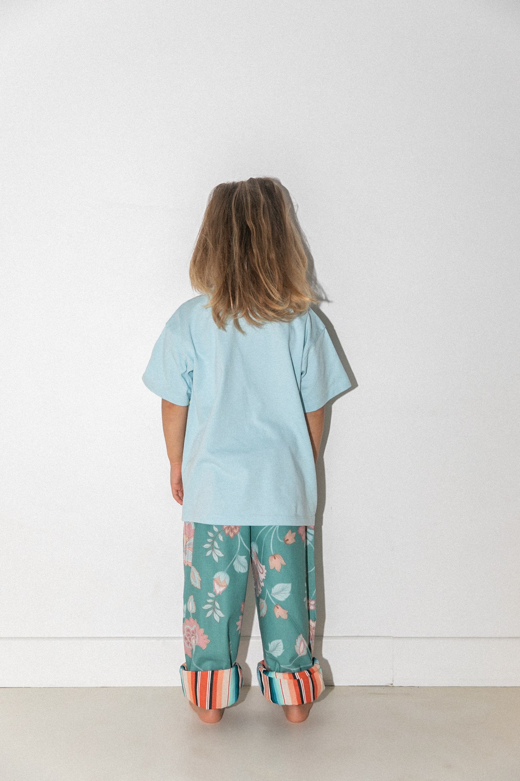 "Imprimés vintage qu’on adore ! Les pantalons sont géniaux et confortables aussi bien pour filles que garçons" -- Juliette M., maman d'Elliot, Alice et Léon.